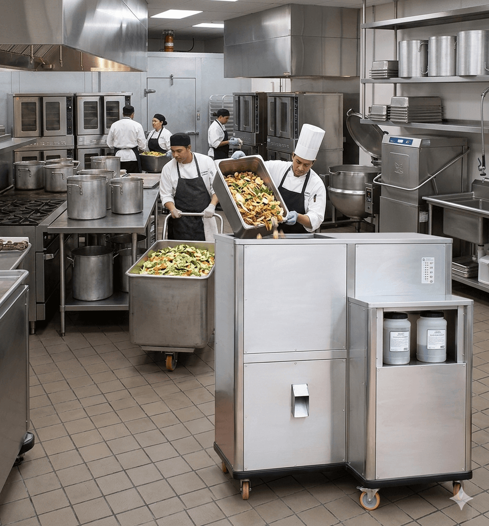 It transforms all types of food waste — fruits & vegetables trims, meat bones,